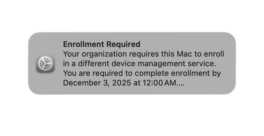 With the new Tahoe-based migration, this disruption is substantially reduced. The user can continue working while the new MDM assignment is delivered in the background. Instead of a complete wipe, the user only sees a few notifications as new profiles are installed and old ones removed. Data, applications, and personal settings remain intact, turning hours of downtime into a minor blip in their day.